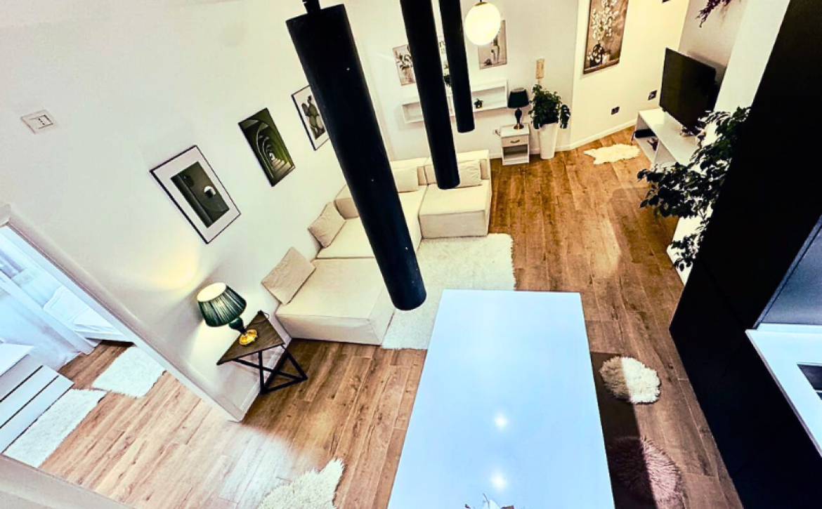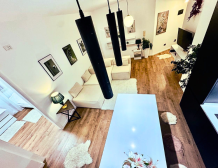 Apartmán s obytnou plochou 66 m² (73 m² hrubá plocha) se nachází v 6. patře s výtahem. Vyniká moderním designem, kvalitním vybavením a světlým otevřeným prostorem obývacího pokoje propojeným s kuchyňským koutem.